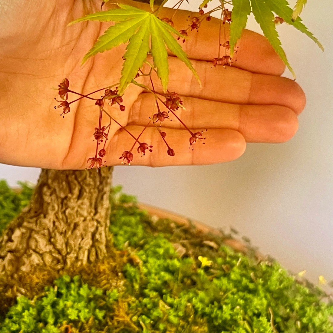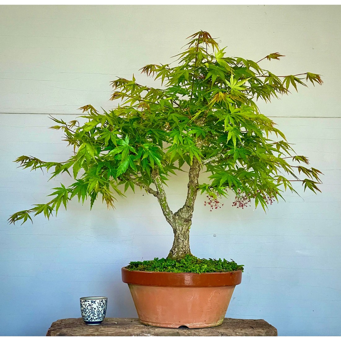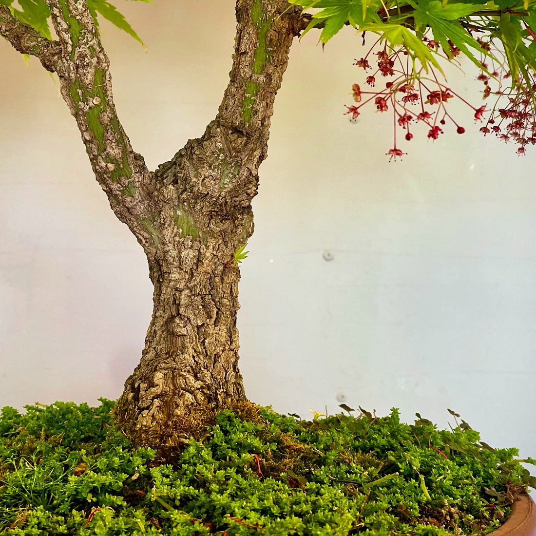 Su follaje cambia con las estaciones, ofreciendo una paleta de colores única: brotes rojizos en primavera, verde intenso en verano y espectaculares tonos dorados y carmesí en otoño. Una pieza ideal para coleccionistas y amantes del bonsái que buscan autenticidad y elegancia natural.