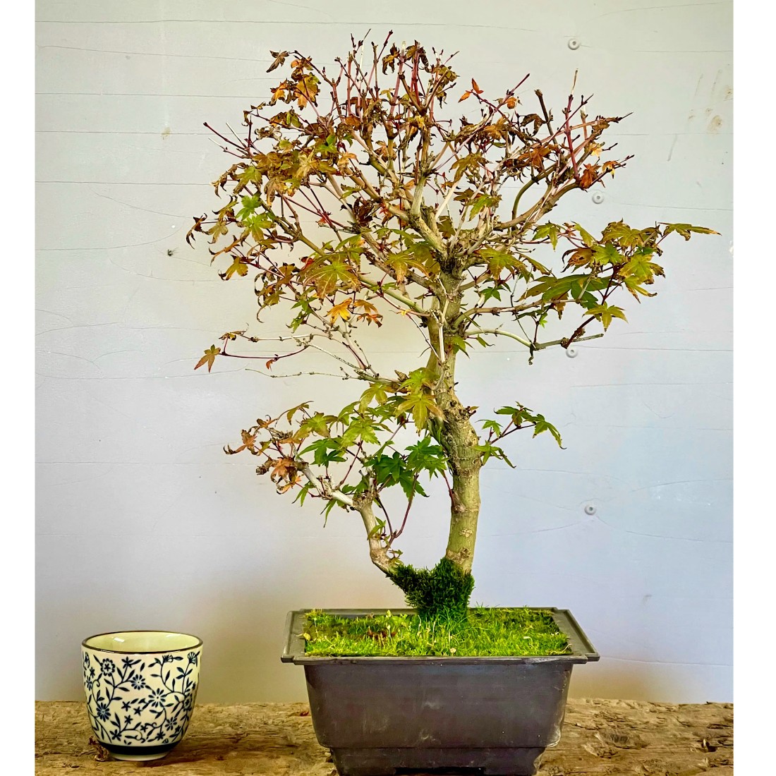 Bonsai Acer palmatum deshojo. Arce japonés palmeado. Son árboles que por sus características deben situarse en el exterior, ideales para balcones, jardines y terrazas. Árbol de hoja caduca, muy apreciado por la coloración de sus hojas.
