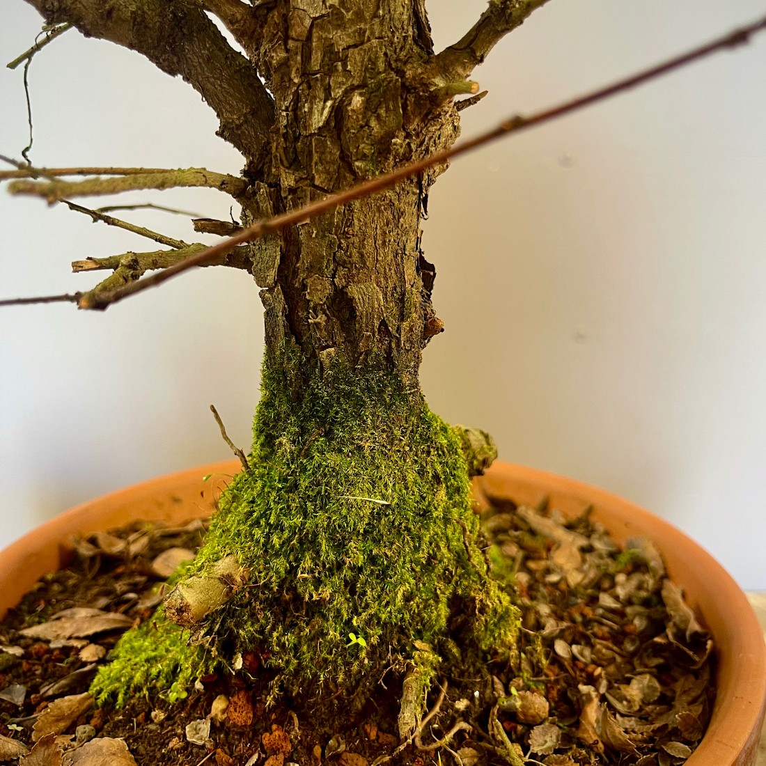 Sustrato: Sustrato especial para el bonsái, que satisface sus necesidades de agua y nutrientes, fomentando el desarrollo de raíces y vigor en general. También se pueden utilizar otros sustratos, como una mezcla de 70% Akadama + 30% Kiryuzuna, que promueve el crecimiento, aunque requerirá de riegos más frecuentes.