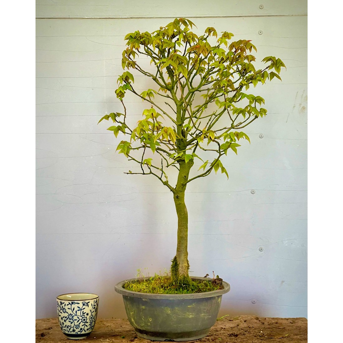 Bonsai Arce Burgueriano Japones, Acer buergerianum. Acer tridente japonés. De importacion japonesa. Bonsái de exterior. son apreciados por sus características hojas pequeñas de tres puntas, que en otoño ofrecen un bonito color amarillo. Dentro de los Acer bonsái, se trata de uno de los más resistentes a todas las técnicas. Se adapta perfectamente al clima mediterráneo.