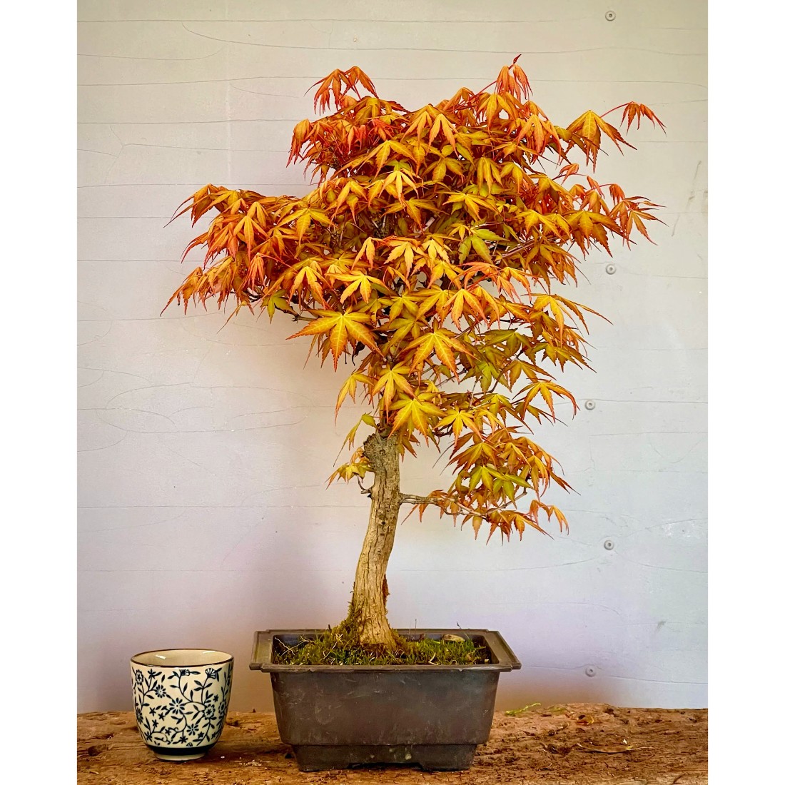 Bonsai Acer palmatum Katsura. Arce japonés palmeado. Son árboles que por sus características deben situarse en el exterior, ideales para balcones, jardines y terrazas. Árbol de hoja caduca, muy apreciado por la coloración de sus hojas.