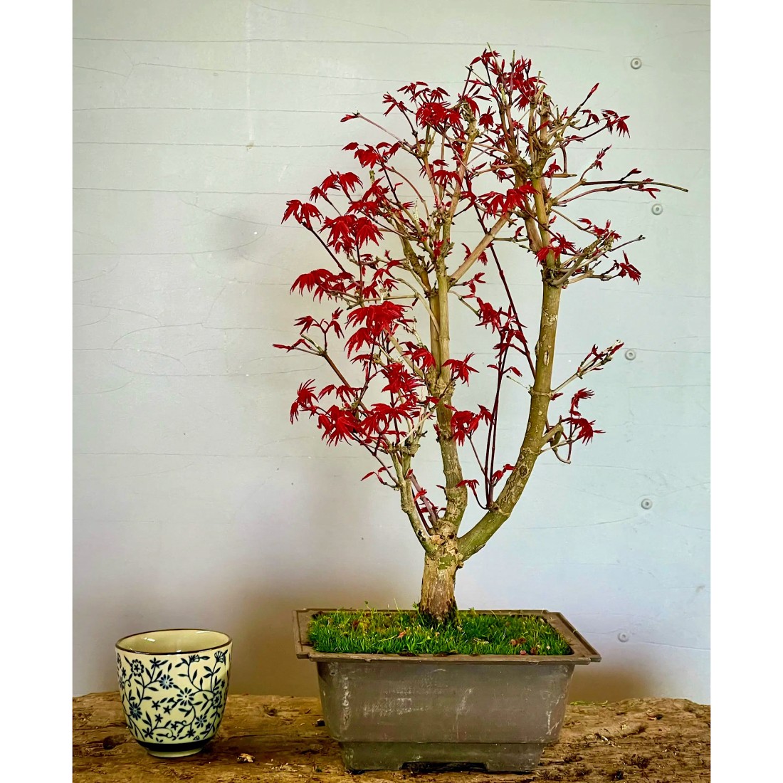Bonsai Acer palmatum deshojo. Arce japonés palmeado. Son árboles que por sus características deben situarse en el exterior, ideales para balcones, jardines y terrazas. Árbol de hoja caduca, muy apreciado por la coloración de sus hojas.