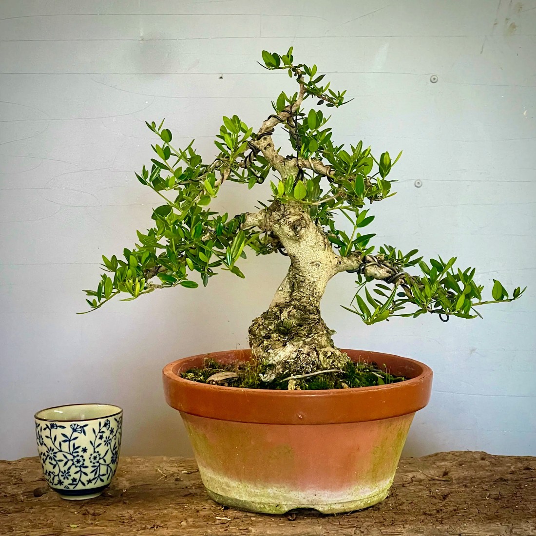 Acebuche o Olivo. Son árboles típicamente mediterráneos. Viven mejor en el exterior. Árbol de hoja perenne, de crecimiento lento pero constante. Apreciado por sus hojas pequeñas, muy acorde al tamaño del bonsái.