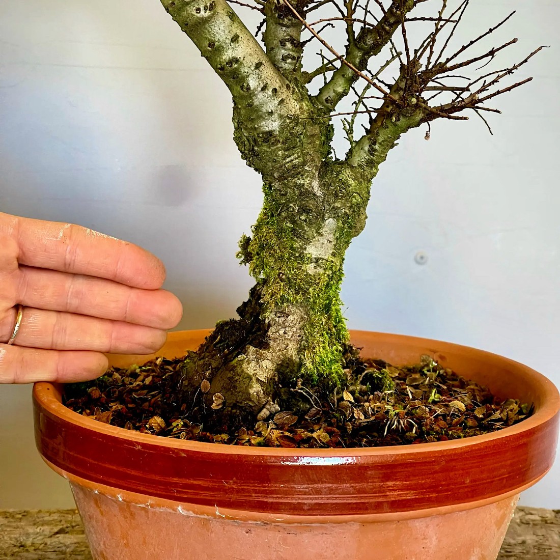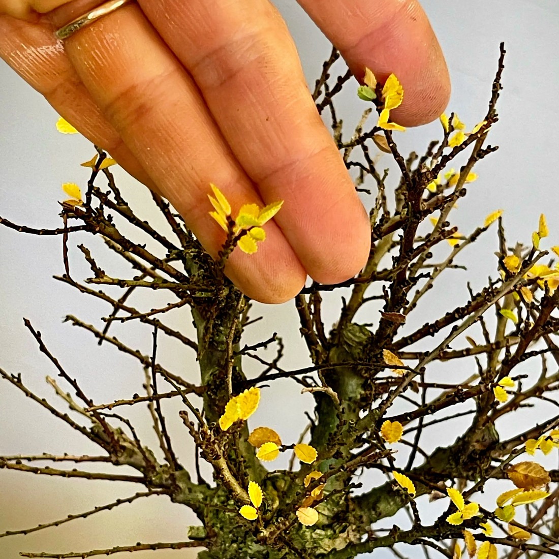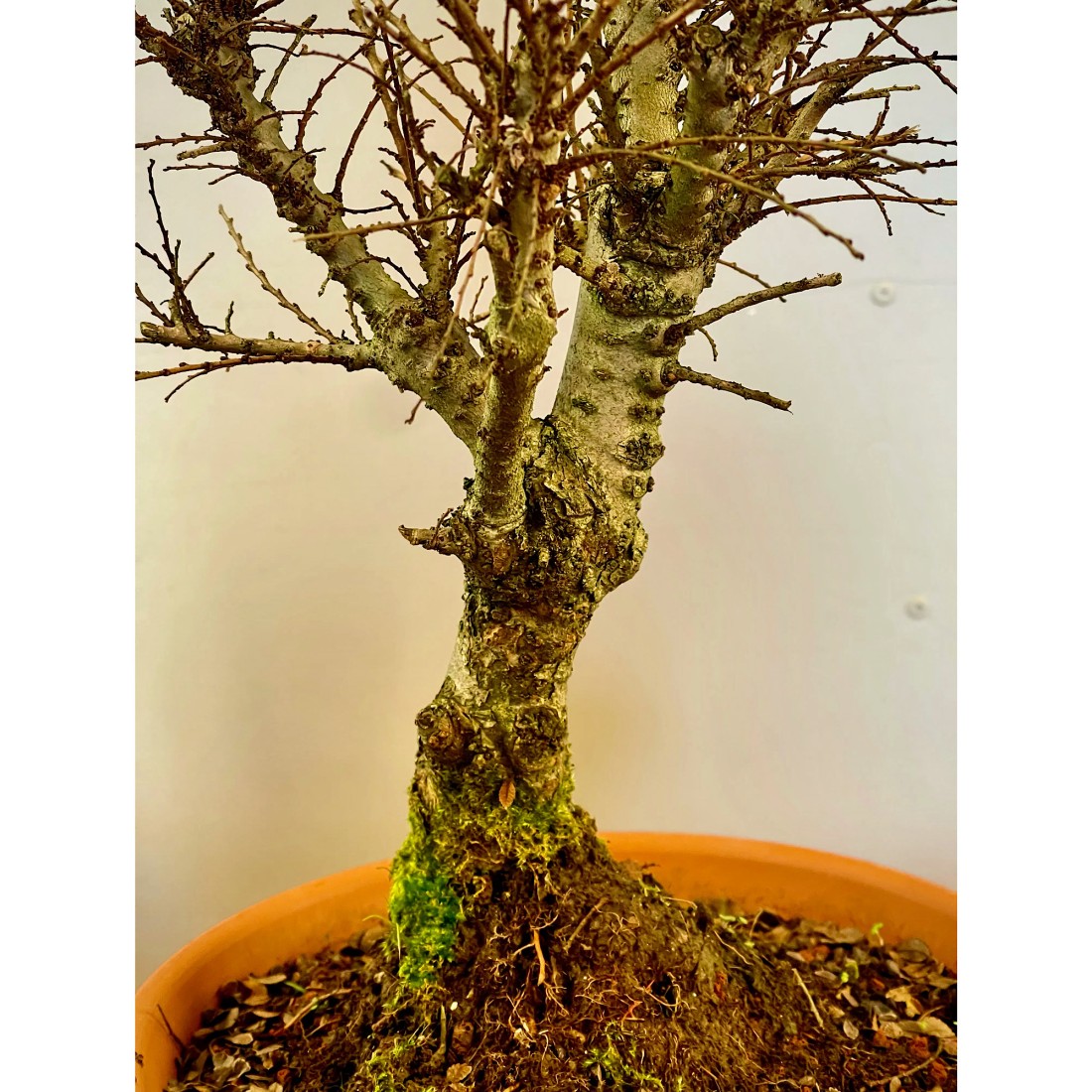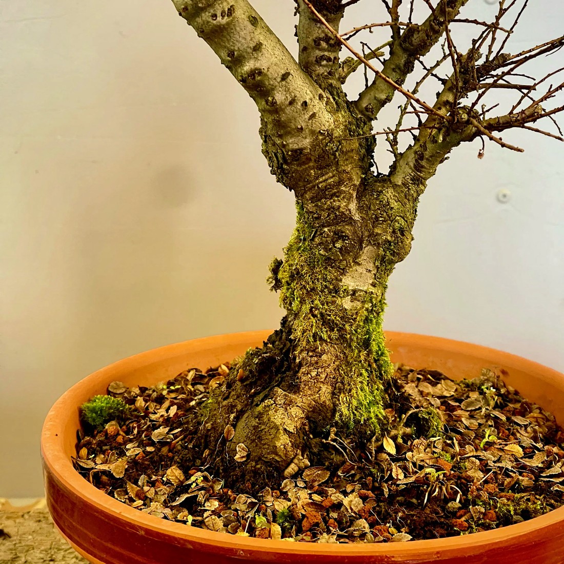 Estilo sugerido: El estilo más clásico para la Zelkova es el Hokidachi (Escoba), ya que imita su forma natural de crecimiento en la naturaleza, aunque la variedad 'Hokkaido' también luce espectacular en estilos informales debido a su tronco rugoso.