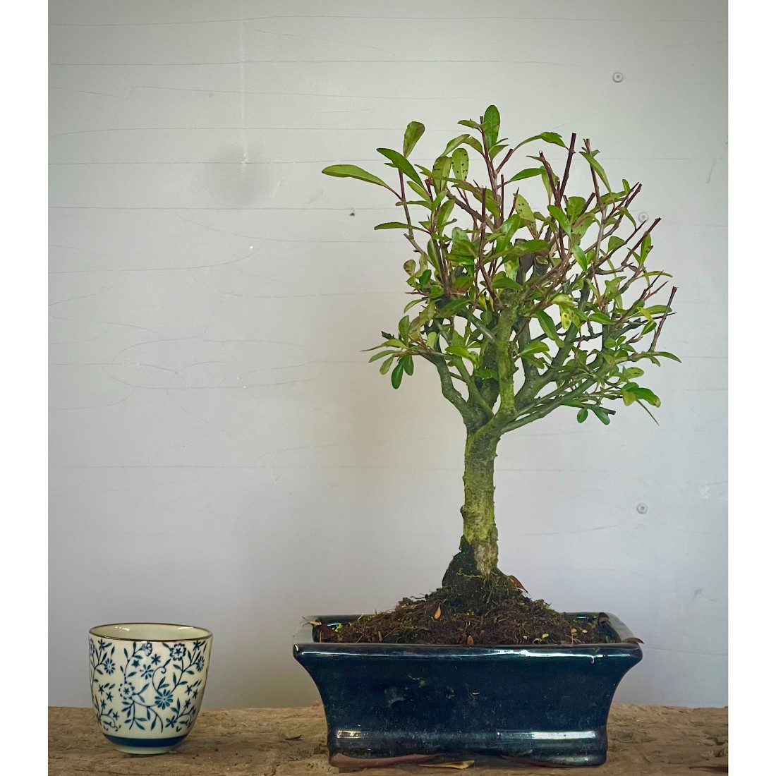 Bonsai Pyracantha angustifolia, espino de fuego en maceta ceramica Yinxing.